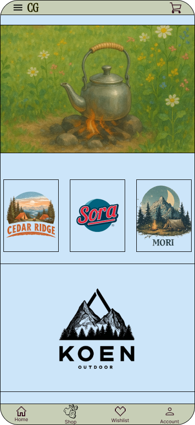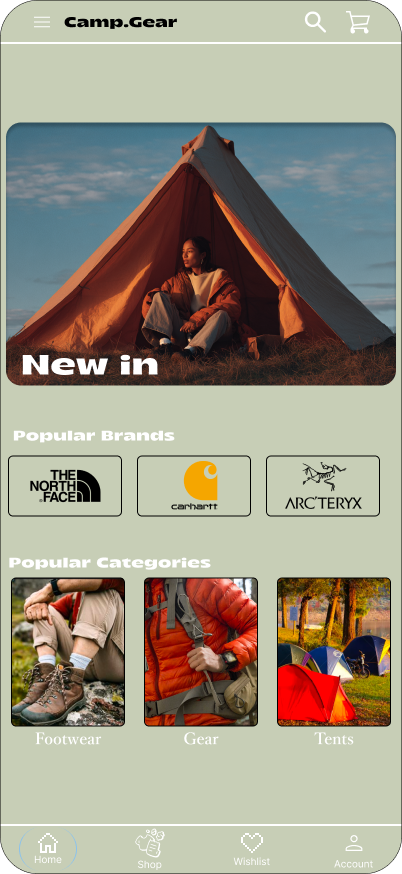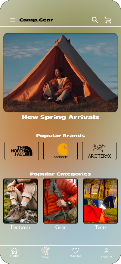Camp.Gear is an app for a camping supply store that allows users to purchase camping clothing, gear and supplies.